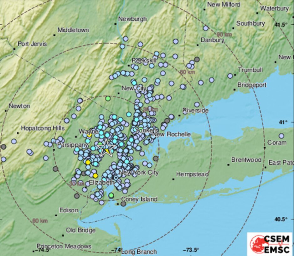 Trận động đất với cường độ ban đầu là 3 độ Richter xảy ra ở phía bắc bang New Jersey, Mỹ vào đêm muộn và các cơn dư chấn có thể cảm nhận được ở khắp thành phố New York.