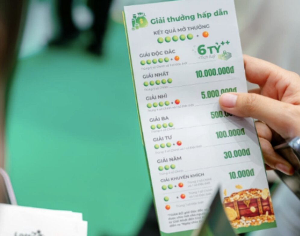 Như vậy, nếu bạn trùng đúng 1 số đặc biệt trong bộ số dự thưởng, bạn đã trúng Giải Khuyến khích với trị giá 10.000 VNĐ . Đây là hạng giải thưởng có giá trị nhỏ nhất nhưng lại có tỉ lệ trúng cao nhất, giúp nhiều người chơi có cơ hội nhận thưởng.