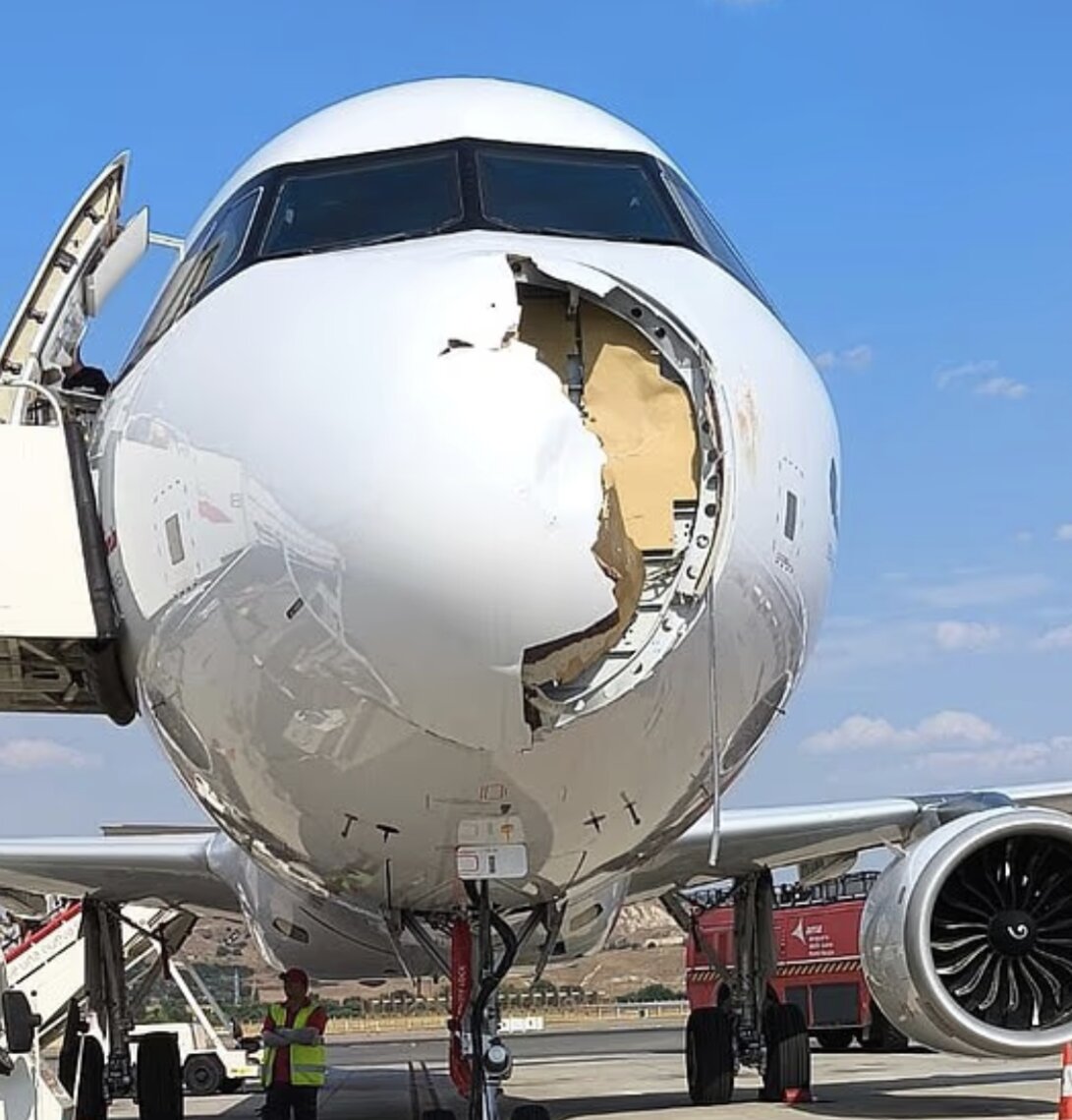 Chiều 3/8, chuyến bay IB579 của hãng hàng không Iberia đã buộc phải quay đầu và hạ cánh khẩn cấp xuống Madrid sau khi bị một con chim lớn va trúng trong lúc cất cánh. Cú va chạm đã khiến phần mũi của máy bay – nơi đặt radar thời tiết – bị hư hỏng nặng và một phần vỏ máy bay đã bị bung ra. Một bức ảnh khác chụp lại con chim gây ra vụ va chạm nằm trên một trong những động cơ phản lực của máy bay.
