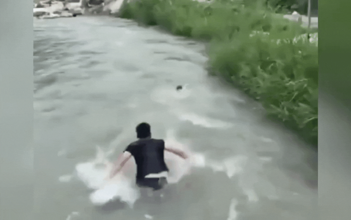 Theo như có một đoạn camera an ninh ghi lại khoảnh khắc nghẹt thở thót tim khoảnh khắc người đàn ông lao mình xuống dòng nước xiết, cứu bé trai bị cuốn trôi đang lan truyền chóng mặt trên mạng xã hội Trung Quốc. Cậu bé nhỏ tuổi đang chơi gần mép bờ thì bất ngờ trượt chân, rơi xuống dòng nước chảy xiết. Trong khi những người xung quanh chưa kịp phản ứng, một người đàn ông mặc áo đen được cho là người dân địa phương đã lập tức lao mình xuống dòng nước, không chút do dự.