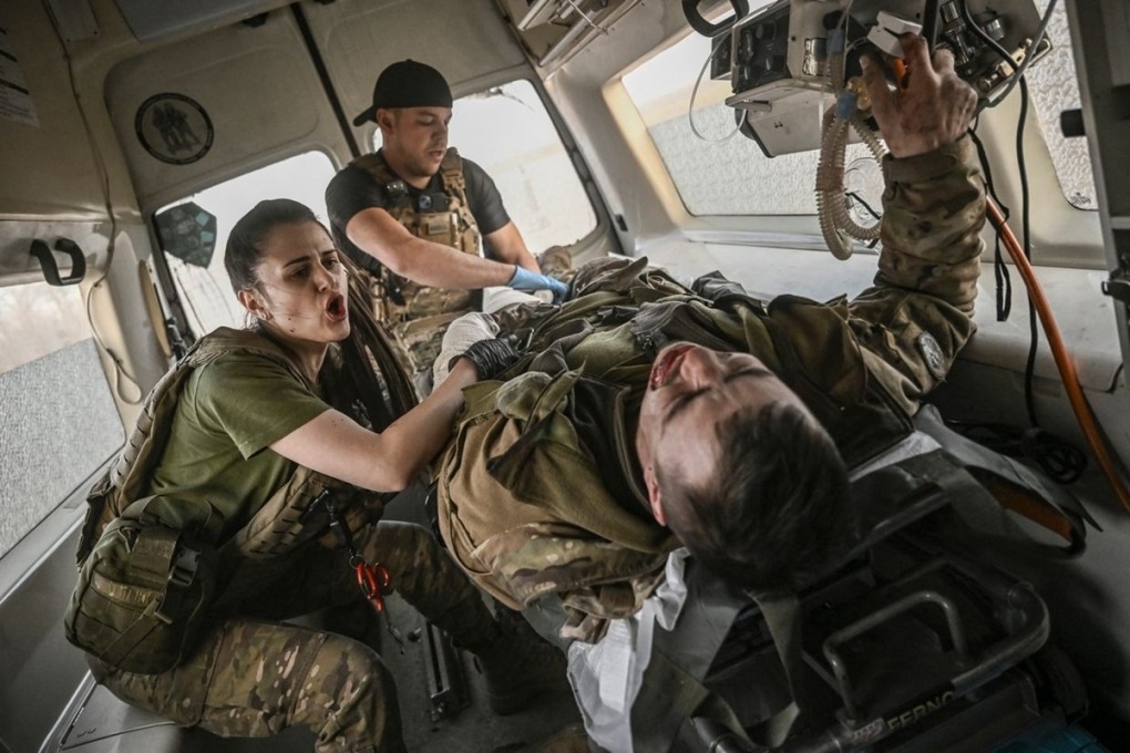 Binh sĩ bị thương chờ được sơ tán tại một bệnh viện của Ukraine hồi năm 2023. Ảnh: Anadolu Agency