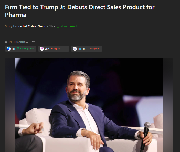 Trump Jr. đã trở thành đối tác của công ty đầu tư mạo hiểm 1789 Capital vào năm ngoái sau khi cha ông đắc cử. Công ty này sau đó đã dẫn đầu vòng gọi vốn 140 triệu đô la vào BlinkRx. Trump Jr. đã tham gia hội đồng quản trị của công ty vào tháng 2.