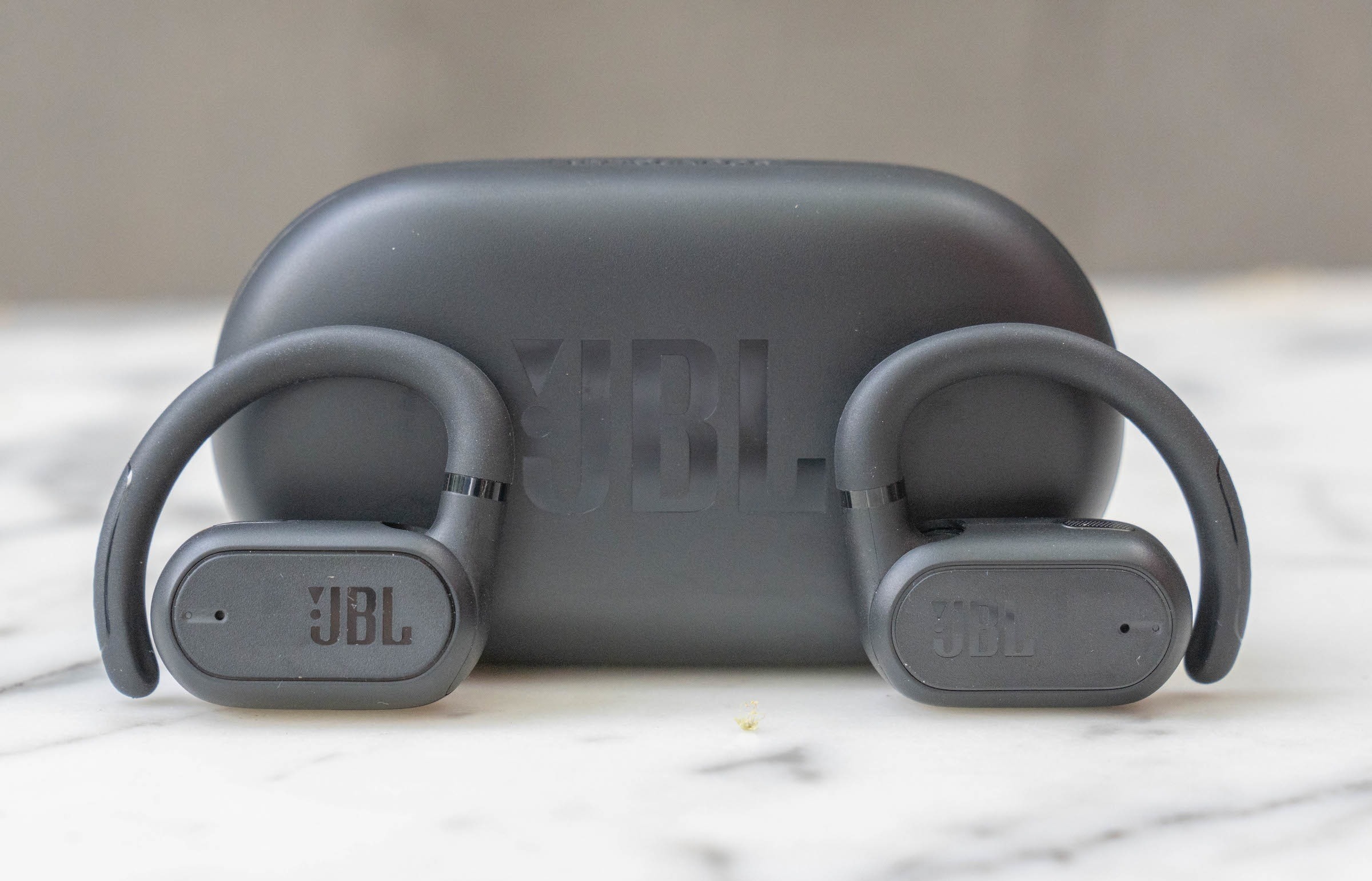 Tai nghe JBL có thiết kế dạng móc tai, kích thước lớn và nặng 12,85 g. Tuy nhiên, thiết bị không gây khó chịu khi sử dụng thời gian dài. Sản phẩm hỗ trợ chống nước và bụi IP54, đi kèm neckband có thể tháo rời giúp giữ chắc chắn hơn khi vận động.