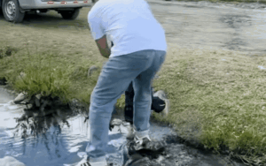 Theo như có một gia đình đi du lịch và phải băng qua một con suối nhỏ. Con suối không quá sâu, có vài tảng đá đặt sẵn để bước qua đã đoạn clip ghi lại khoảnh khắc ông bố bế con trai qua suối bị trượt chân té, thu hút hàng triệu lượt xem. Tuy nhiên, lo sợ con mình tự đi sẽ trượt chân ngã, người bố đã quyết định bế con trên tay để đảm bảo an toàn.