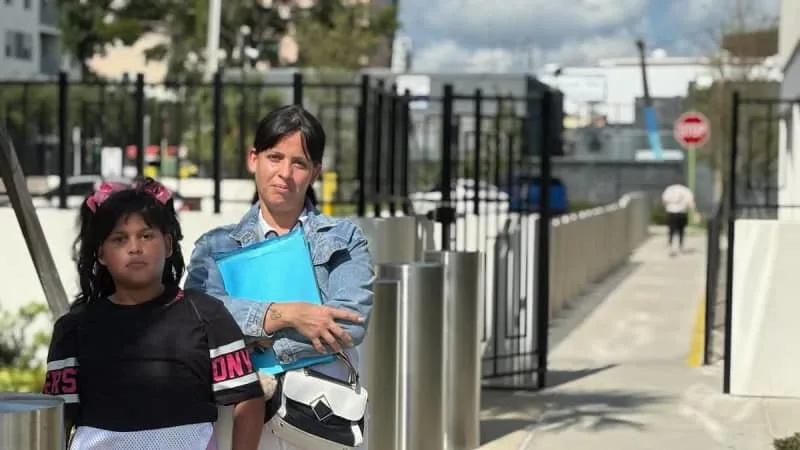 Alexa Figueroa và con gái đứng bên ngoài tòa án di trú ở Orlando. Cô Figueroa cho biết thẩm phán đã khuyên cô nên tìm một luật sư di trú. (Minh họa)