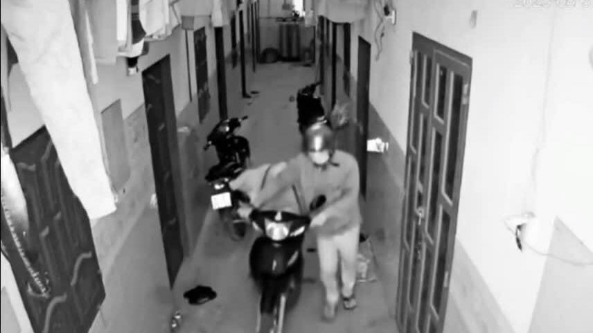 Camera an ninh tại khu trọ ghi cảnh Nhã dùng xe máy chở thi thể người tình phi tang.