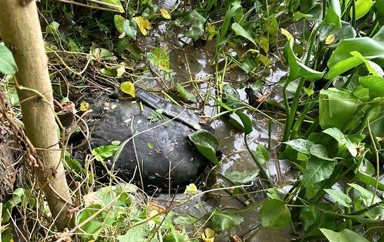 Bao tải thi thể nạn nhân được người dân phát hiện.