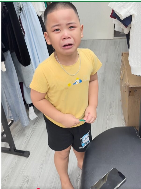 Cậu bé Xuân Bảo vừa khóc vừa "tố" mẹ mình rằng: “Mẹ đẻ 2 đứa con, đứa ngồi học, đứa ngồi chơi”.