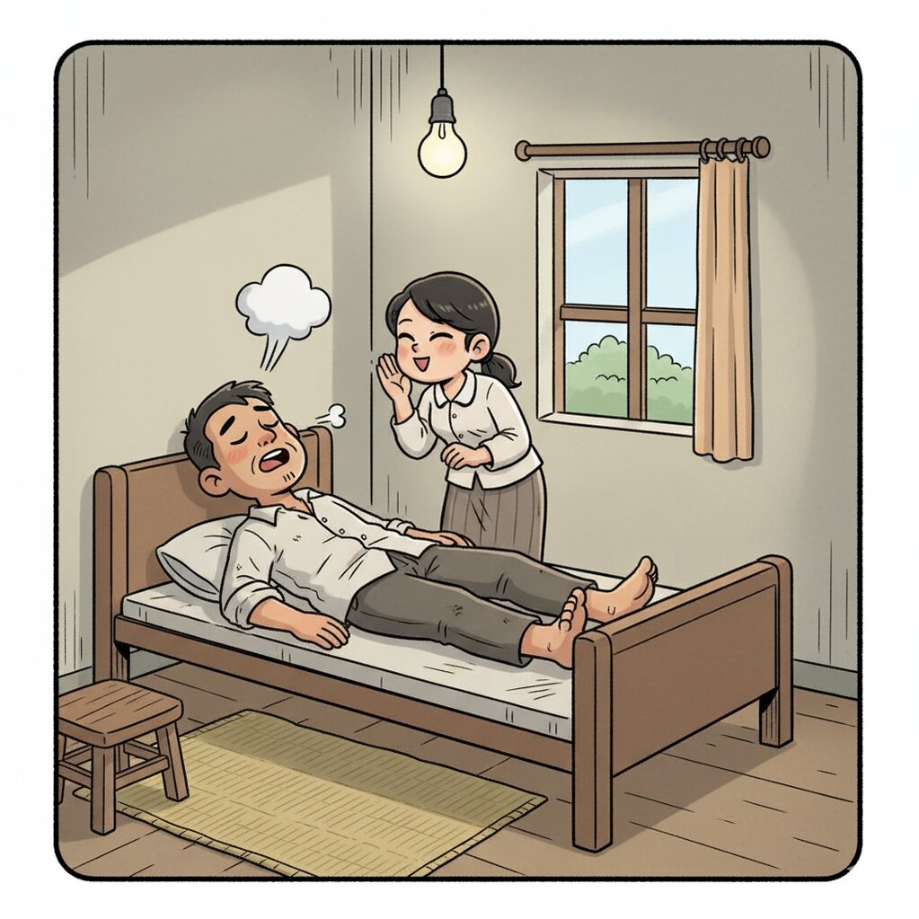 Anh chồng mệt lắm, bèn nghĩ ra một kế, thủ thỉ với vợ:
