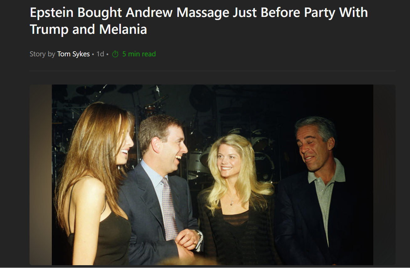 Hoàng tử Andrew đã được Jeffrey Epstein, một kẻ buôn bán tình dục, trả 200 đô la cho một buổi mát-xa vào một ngày trước khi cả hai người đàn ông này tiệc tùng với Donald Trump và Melania, theo tiết lộ của tờ The Royalist.