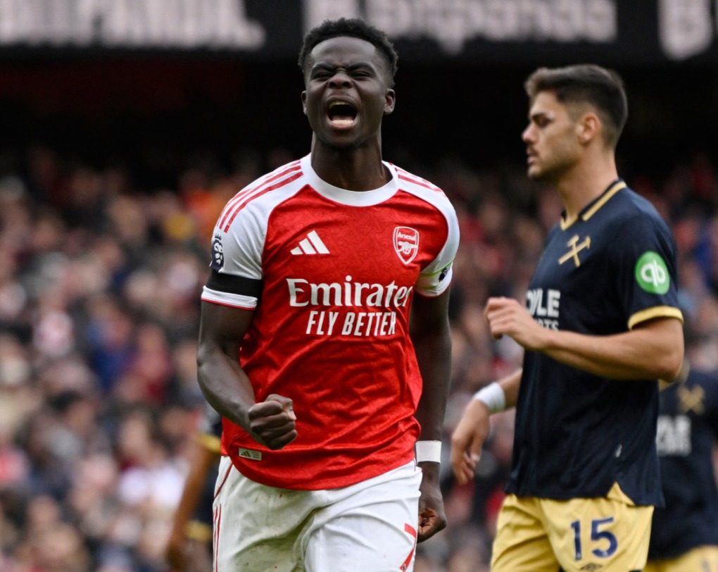 Với 55 bàn và 45 kiến tạo, Saka trở thành cầu thủ Arsenal thứ 8 góp dấu giày vào 100 bàn tại Ngoại hạng Anh, và anh đạt được cột mốc quan trọng trong lần ra sân thứ 200 tại giải. Cesc Fabregas (23 tuổi 237 ngày) là cầu thủ duy nhất chạm mốc này ở độ tuổi trẻ hơn Saka (24 tuổi 29 ngày) cho Arsenal.