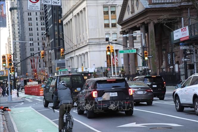 Các phương tiện lưu thông trên phố ở New York, Mỹ.