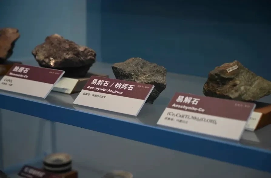 Mẫu khoáng sản đất hiếm được trưng bày tại Viện Địa chất và Địa Vật lý, Viện Hàn lâm Khoa học Trung Quốc. Ảnh: CNN