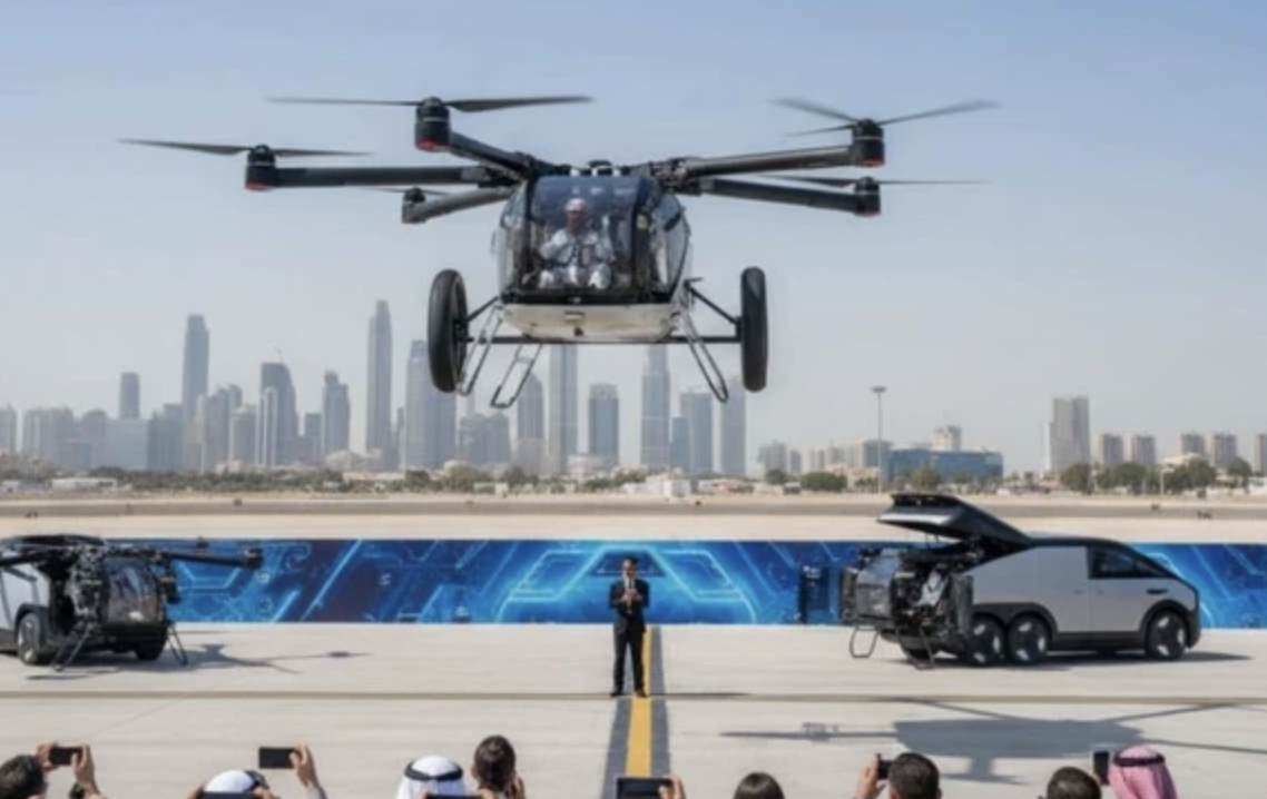 Trong buổi ra mắt tại Dubai, chiếc Land Aircraft Carrier – đúng như tên gọi “Tàu sân bay mặt đất” – khiến khán giả choáng ngợp khi có thể vừa chạy trên đường như một chiếc SUV sáu bánh, vừa tách phần thân trên để cất cánh thẳng đứng như máy bay không người lái cỡ lớn. Nó đủ chỗ cho hai hành khách, có thể hoạt động bán tự động hoặc hoàn toàn tự động và chỉ mất 18 phút để sạc từ 30 đến 80%.