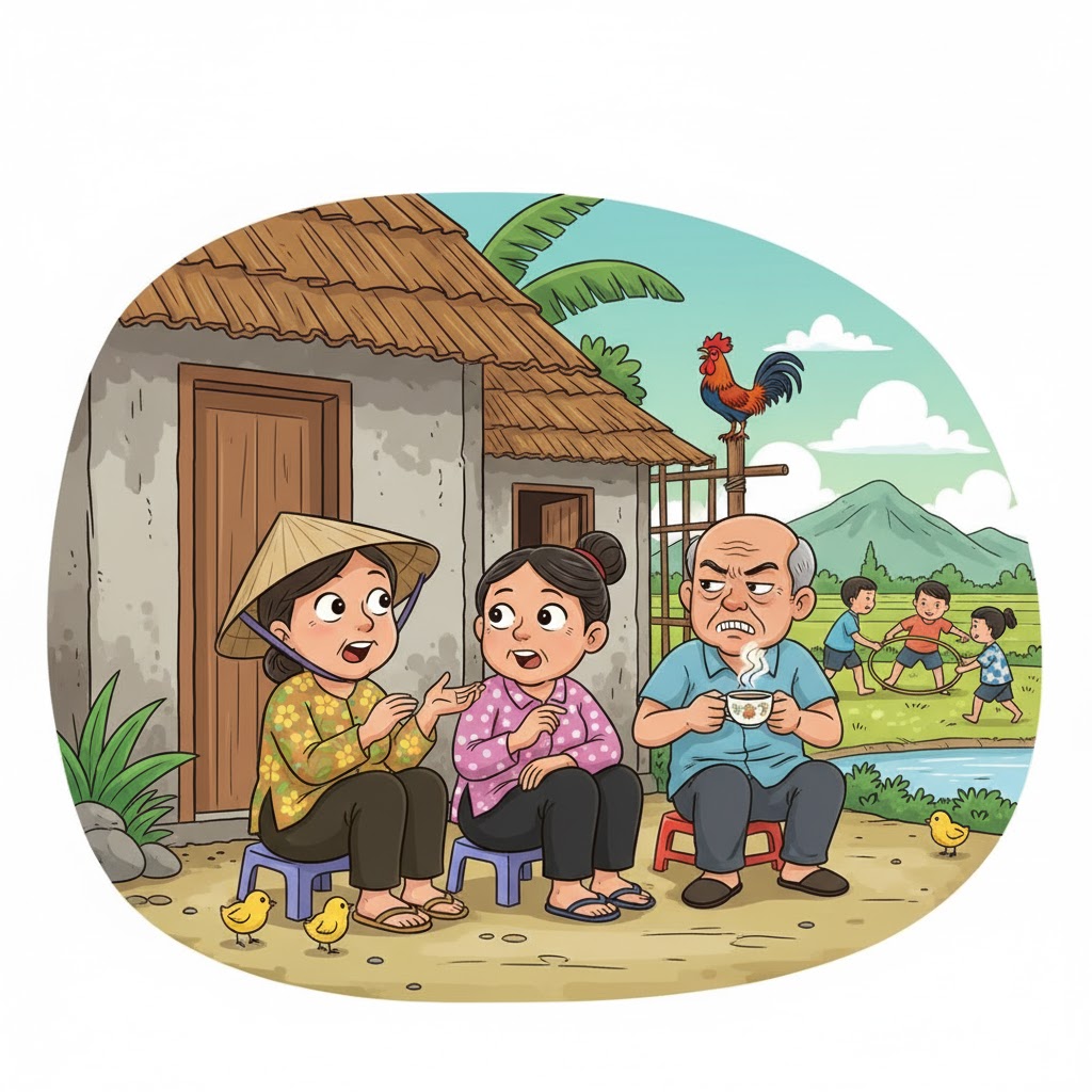 Ông chồng của bà B ngồi trong nhà nghe thấy, đang nhâm nhi chén trà mà suýt sặc. Ông chống gậy bước ra, mặt đỏ gay, quát lớn: