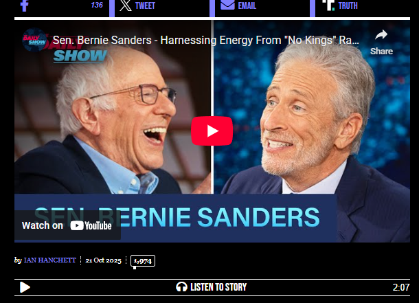 Stewart asked, “[W]hat Democrats find themselves in a place is, we’ve shut down the government to protect subsidies for an insurance marketplace that funnels $800 billion a year into the pockets of all these insurance companies. Have Democrats boxed themselves into a corner fighting for a system that, ultimately, to get to the thing you want, that I think the American people want, they’re going to have to abandon?”