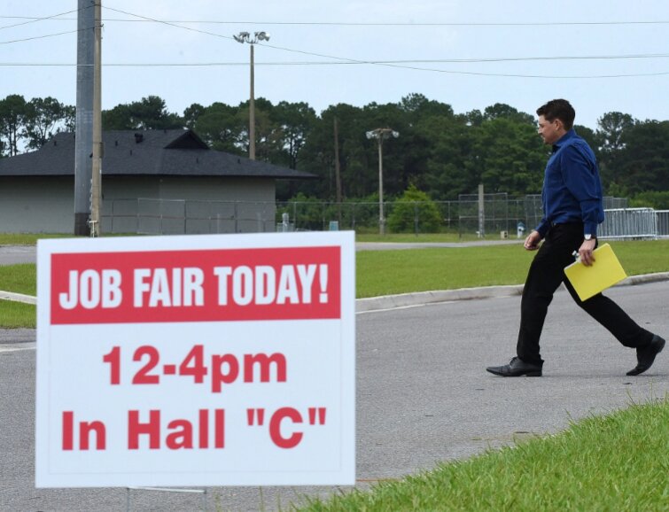 Người Mỹ tham gia hội chợ việc làm tại Florida. Ảnh: Reuters