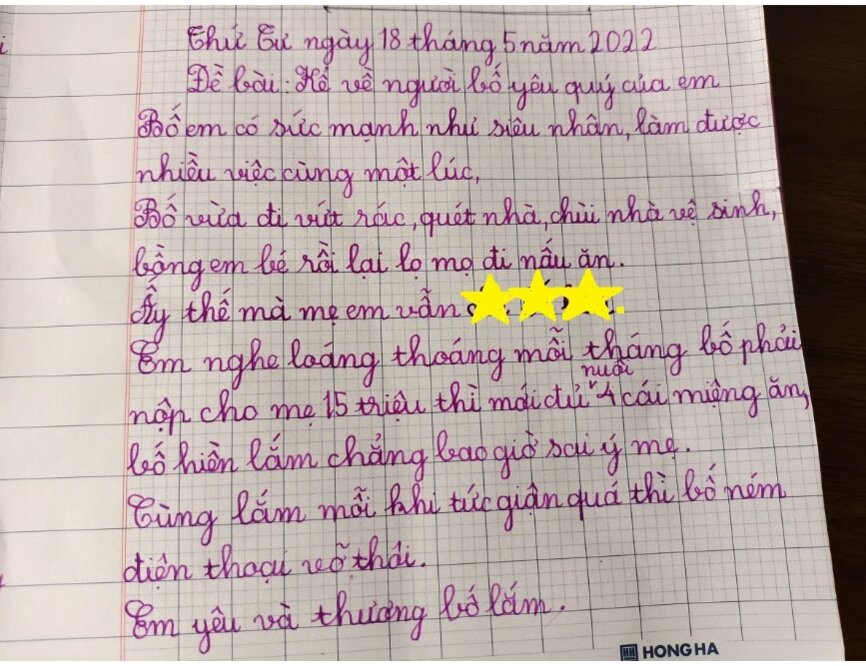 Old  Default Học sinh tiểu học tả bố "như siêu nhân" nhưng mẹ đọc xong lại ngượng chín mặt, đến đoạn cuối thì ngã ngửa
