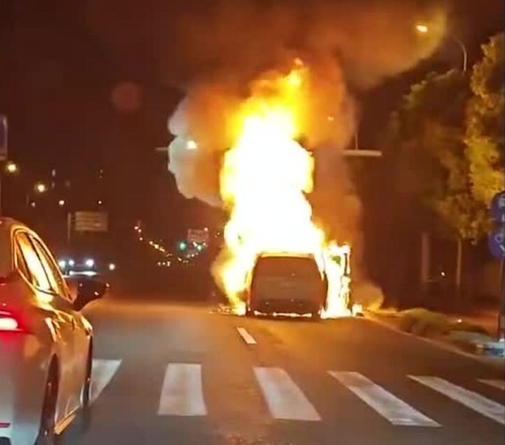 Chiếc MPV điện Li Mega bất ngờ bốc cháy và bị thiêu rụi khi đang chạy trên đường, hai người trên xe thoát được ra ngoài.