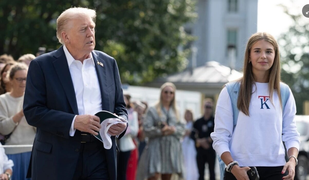 Kai Trump được cùng ông nội - Tổng thống Mỹ Donald Trump - đi dự một giải golf tổ chức tại New York (Mỹ). Ảnh: The Independent.