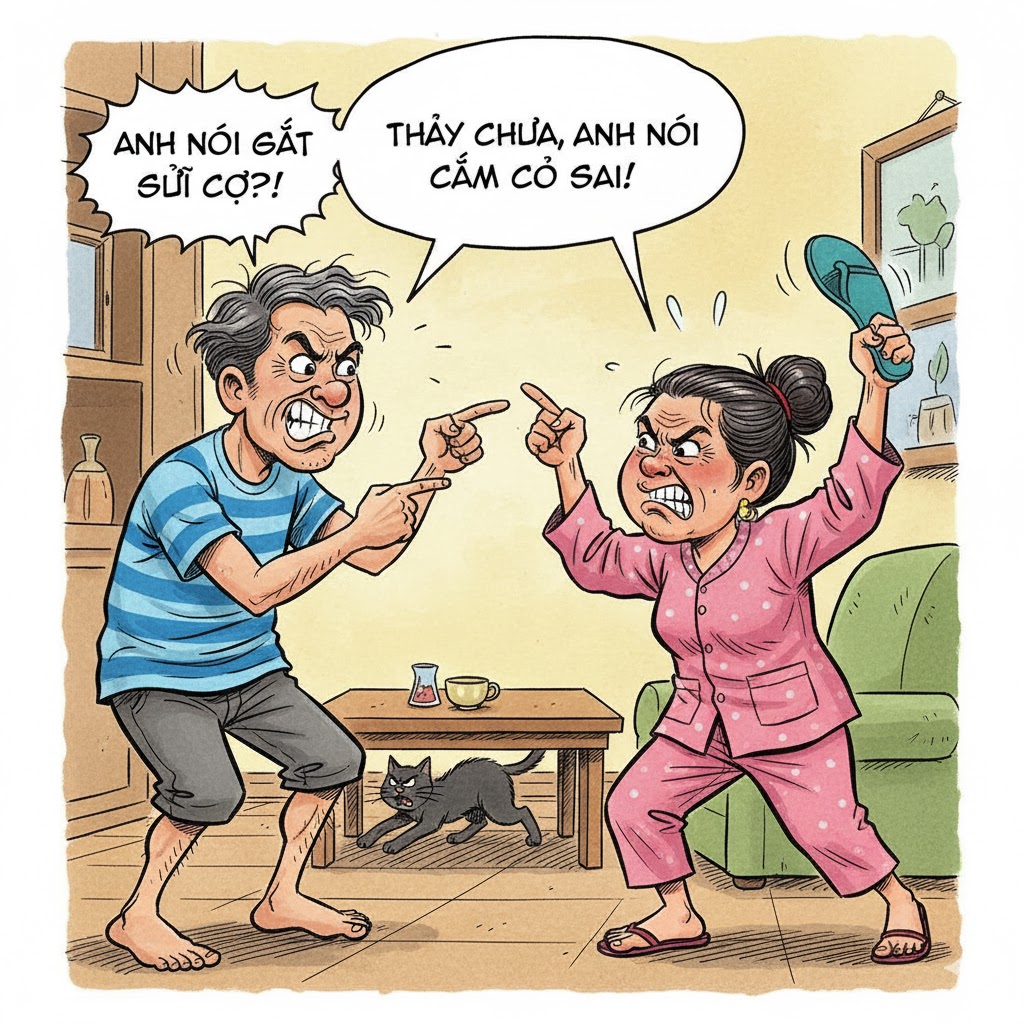 Cô vợ im lặng vài giây, rồi... rút dép lên: