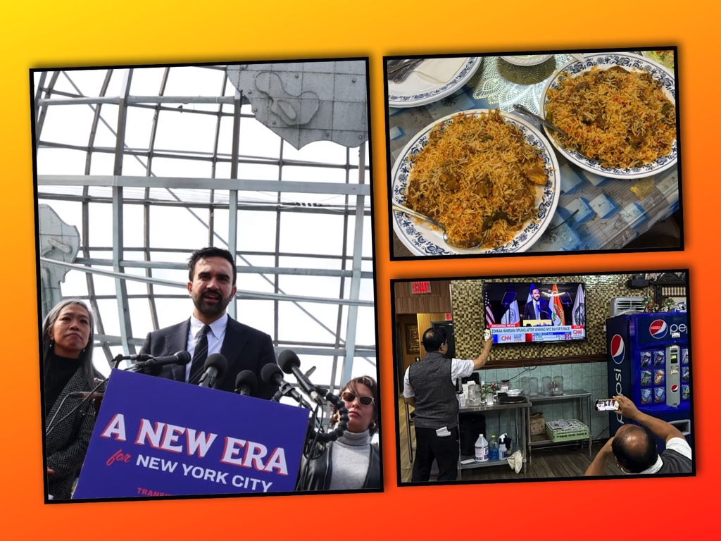 Đêm chiến thắng, khi Zohran Mamdani bước lên sân khấu, cả quán Kabab King ở Jackson Heights bỗng lặng đi. Nhân viên ngừng tay, giơ điện thoại ghi hình. Đó không chỉ là quán ăn ưa thích của tân thị trưởng mà còn là trạm dừng thường xuyên của chiến dịch—nơi đĩa biryani và xiên kebab phủ kín bàn, và tối nay phủ kín cả niềm vui.