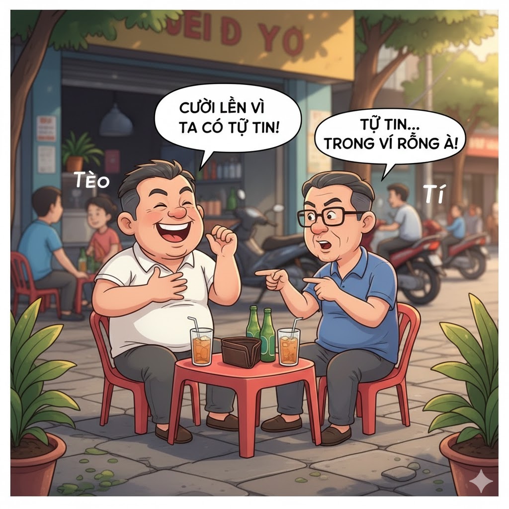 Hai người bạn thân, Teo và Ti, đang nói chuyện về cuộc sống.