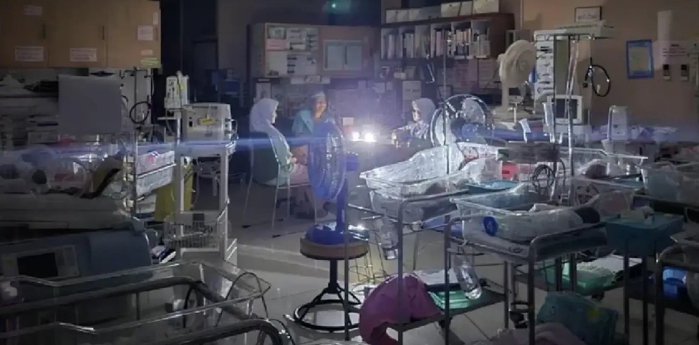 Nhân viên bệnh viện Hat Yai chăm sóc bệnh nhi sơ sinh ngày 24/11, hạn chế mở đèn để tiết kiệm điện cho các thiết bị quan trọng. Ảnh: Nation