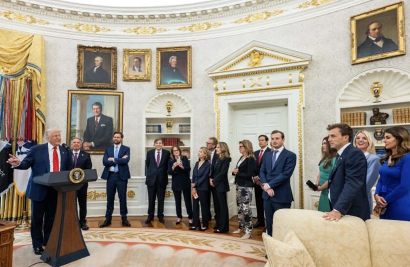 Tổng thống Mỹ Donald Trump, Phó Tổng thống JD Vance cùng các cố vấn và phái viên. Ảnh: Nhà Trắng