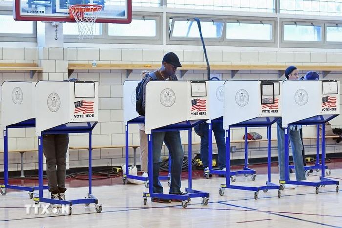 Cử tri bỏ phiếu tại điểm bầu cử ở Manhattan, New York, Mỹ, ngày 5/11/2024. (Ảnh: THX/TTXVN)