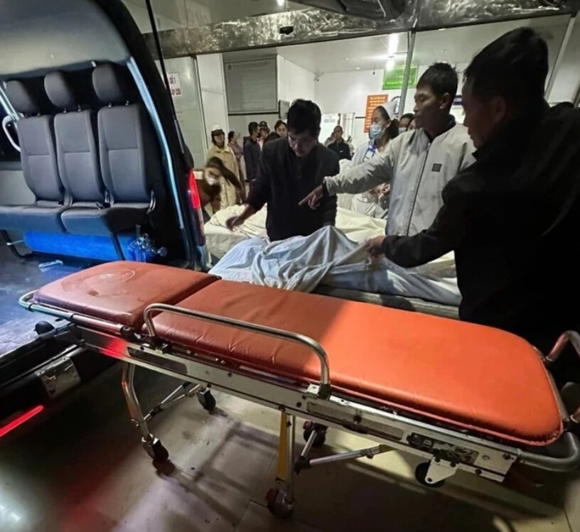 Xe chữa cháy đưa nạn nhân đi cấp cứu.