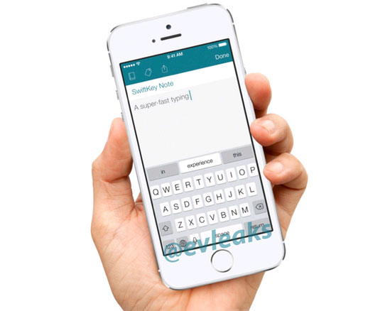 Bức ảnh rò rỉ mới đây, được đăng tải bởi tài khoản Twitter nổi tiếng @evleaks cho thấy, tấm hình iPhone đang mở một ứng dụng có tên Swiftkey Note. Đây có vẻ là một ứng dụng ghi chú, và được tích hợp chức năng gợi ý từ rất được ưa thích của SwiftKey.