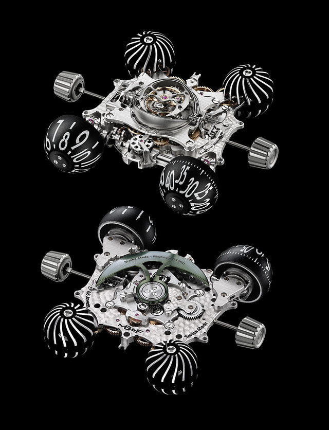Nhà sản xuất đồng hồ cao cấp MB&F vừa ra mắt mẫu đồng hồ mới HM6 "Space Pirate" cực đỉnh, trang bị 5 tính năng nổi bật: hai mái vòm làm bằng sapphire chứa kim giờ và kim phút, 2 mái vòm nữa làm ẩm các tua-bin phục vụ rotor gió và một mái vòm được đặt ở vị trí trung tâm chứa bộ chuyển động tourbillon với một lá chắn tia UV. Cùng với cơ chế hoạt động đặc biệt, hiện đại và các chi tiết thiết kế, HM6 thực sự là một trong những mẫu đồng hồ tốt nhất của hãng MB&F.