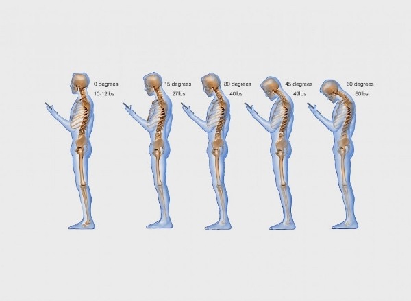 Một nghiên cứu mới chứng minh được rằng, càng cúi nhìn điện thoại, và các thiết bị thông minh hoặc vật dụng khác, cổ bạn phải nâng đỡ 1 trọng lượng càng lớn của đầu. Điển hình, nếu bạn cúi xuống khoảng 60 độ, cổ bạn sẽ chịu sức nặng là 27kg.