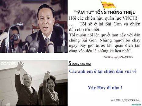Đúng 19 giờ 30, ngày 21 tháng 4 năm 1975, Tổng thống Nguyễn Văn Thiệu đã tuyên bố từ chức và nói chuyện với toàn thể quốc dân đồng bào miền nam Việt Nam trong gần hai tiếng đồng hồ trực tiếp trên truyền thanh và truyền hình trên toàn quốc. Ông trình bày các diễn tiến từ Hiệp định Paris 1973 đến việc miền Bắc leo thang chiến tranh năm 1974 việc quân miền Bắc chiếm tỉnh Phước Long mà không gặp phản ứng nào từ phía Hoa Kỳ để rồi từ đó tấn chiếm Ban Mê Thuột mở đầu cho sự thất thủ miền Cao nguyên , miền Trung và miền Duyên hải . Ông Thiệu lên án đồng minh Hoa Kỳ không giữ lời hứa tiếp tục viện trợ cho Việt Nam Cộng Hoà và ông nói rằng : " Từ chối giúp đỡ cho một nước đồng minh, bỏ rơi một nước đồng minh như vậy là một điều vô nhân đạo " . Ông Thiệu nói thêm rằng : " Người Mỹ thường hãnh diện họ là những kẻ vô địch bảo vệ cho chính nghĩa và lý tưởng tự do trên thế giới và sang năm tới họ sẽ ăn mừng lễ kỷ niệm 200 năm lập quốc , liệu người ta còn có thể tin tưởng vào những lời tuyên bố của người Mỹ hay không ? " .