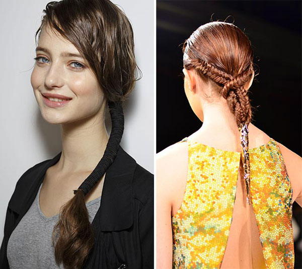 Ngoài việc làm thành băng đô nhỏ xinh như thông thường thì bạn có thể tạo mẫu tóc đuôi ngựa bằng cách cuộn chặt dây thun nhiều vòng. Sự cầu kỳ, tỉ mỉ sẽ giúp các nàng nổi bật với phong cách cá tính. Trong show thời trang xuân hè 2015, các nhà mốt Bora Aksu, Cesar Galindo, Reed Krakoff... liên tục gây ấn tượng với những style tóc độc đáo khi sử dụng dây thun linh hoạt trong việc tạo kiểu tóc.