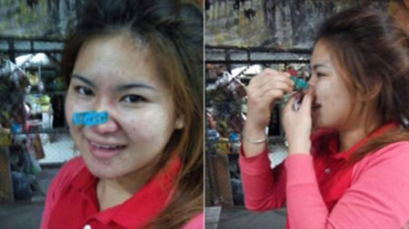 Ngày 5/1 vừa qua, một thiếu nữ trẻ đã gây sốc khi khoe phương pháp tự chỉnh sửa mũi rất thô sơ trên một chương trình truyền hình thực tế của Thái Lan.