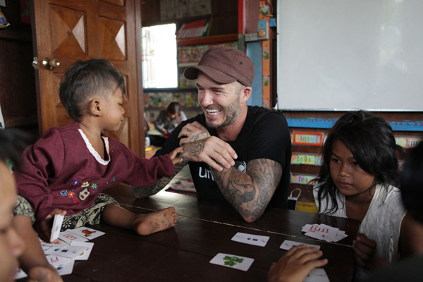 Gần đây, Becks đã tới đất nước đang phát triển Campuchia để tham gia chương trình được tổ chức bởi Quỹ Nhi đồng Liên hợp quốc. Tại cuộc gặp gỡ các trẻ em bị bạo hành Becks đã có những sự quan tâm, gần gũi rất đáng ngưỡng mộ. Ngoài việc nổi tiếng là một ông bố lý tưởng, Becks còn cho thấy anh là một người đàn ông rất yêu trẻ em.