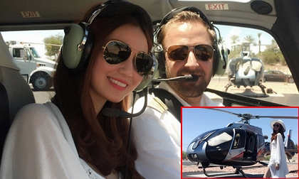 Khánh My đi trực thăng tham quan nước Mỹ - chiêm ngưỡng toàn cảnh thành phố Las Vegas bằng trực thăng. Khánh My chia sẻ, ngồi trực thăng ngắm toàn cảnh Las Vegas là một trải nghiệm thú vị.