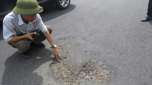 Theo ông Hải, hóa chất được tạt xuống mặt đường có mùi hắc, sau khi bị tạt, mặt đường có hiện tượng mềm nhũn, bong tróc, lấy chìa khóa xe có thể cạy lên được.