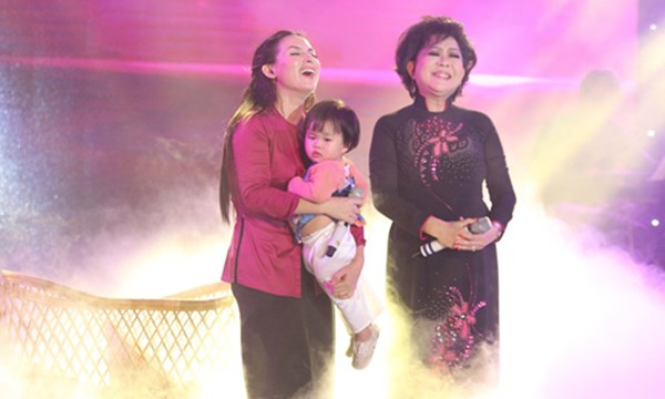 Một trong những tiết mục ấn tượng của Phi Nhung khi có sự xuất hiện của mẹ nuôi danh ca Giao Linh và cô con gái nuôi của Phi Nhung trên sân khấu.