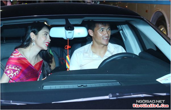 Sau khi bà xã xuống xe và tiến vào khu vực sân khấu, Công Vinh lái ô tô về nhà.
