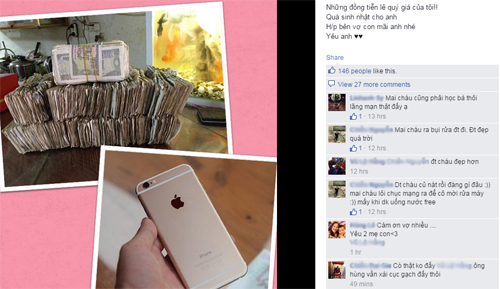 Chiều 8/10, chị Hằng đem toàn bộ số tiền lẻ của mình đi mua điện thoại và đăng ảnh lên Facebook cá nhân rằng đây là món quà dành tặng sinh nhật chồng. Rất nhiều bạn bè của chị đã tỏ ra bất ngờ và còn cho rằng chị đang đùa.