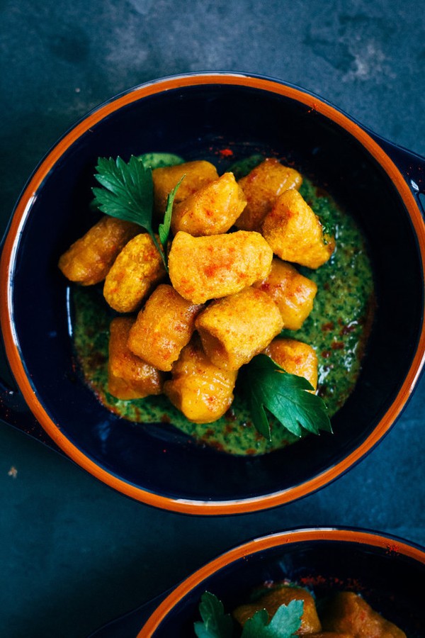 Gnocchi thường được làm từ khoai tây nghiền sau đó chiên hoặc luộc chín, tuy nhiên Gnocchi bí đỏ ăn kèm với nước xốt pesto lại mang đến những trải nghiệm vị giác khác biệt. Chính phần xốt Pesto với phomai nghiền, dầu ôliu, húng quế đã làm dậy mùi thơm của Gnocchi bí đỏ.
