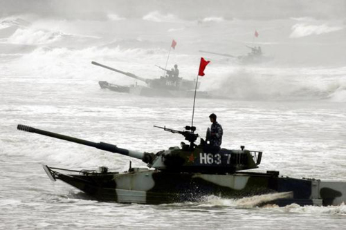 Xe tăng lội nước Trung Cộng đang tiến chiếm đảo