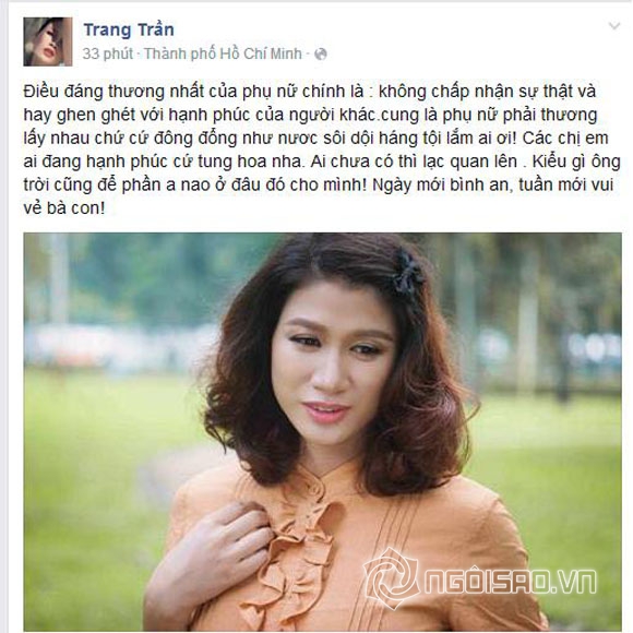 Trang Trần 'đáp trả' sâu cay trên trang cá nhân.
