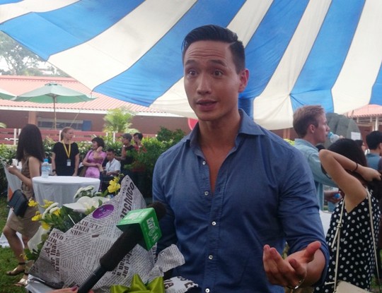 Kim Lý đến với sự kiện với vai trò là đại sứ thiện chí cho chương trình học tập, nghiên cứu ở Thụy Điển. Ngay khi xuất hiện, nhà sản xuất kiêm diễn viên này đã thu hút sự chú ý của các bạn học sinh trung học, sinh viên cũng như khách mời tới dự.