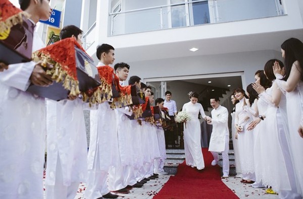 Vào ngày 7/11 vừa qua, người mẫu Phan Như Thảo đã bí mật làm lễ đính hôn với đại gia Nguyễn Đức An - chồng cũ của Ngọc Thúy. Mới đây, một số hình ảnh trong ngày vui của hai người đã được hé lộ với người hâm mộ. Được biết, lễ đính hôn của Như Thảo diễn ra tại nhà riêng của cô ở Nhà Bè, TP.HCM. Trong ảnh cô dâu, chú rể và dàn phụ dâu, phụ rể đều mặc áo dài trắng truyền thống.