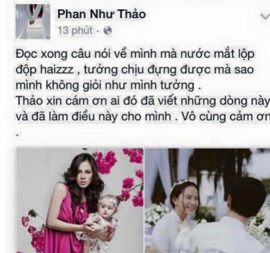 Những lời nhắn nhủ của Ngọc Thúy chia sẻ trên trang cá nhân đăng kèm bức ảnh về tâm sự của Phan Như Thảo: "Đọc xong câu nói về mình mà nước mắt rơi cái độp. Tưởng mình giỏi mà ra mình không giỏi như mình tưởng..."