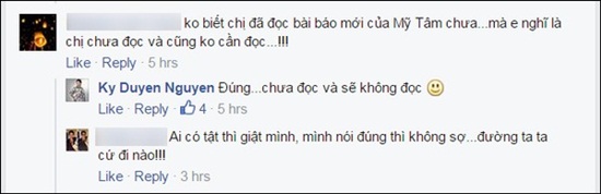 Bằng việc trả lời một trong những bình luận trên facebook với câu nói: "Đúng… chưa đọc và sẽ không đọc", MC Kỳ Duyên đã cho thấy thái độ không quan tâm tới dư luận